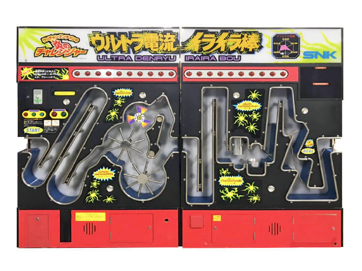 昔、人気TV番組で行われていたゲーム。失敗するとビリビリする電極棒を、フレームや障害物に触れないようゴールまで運びます。