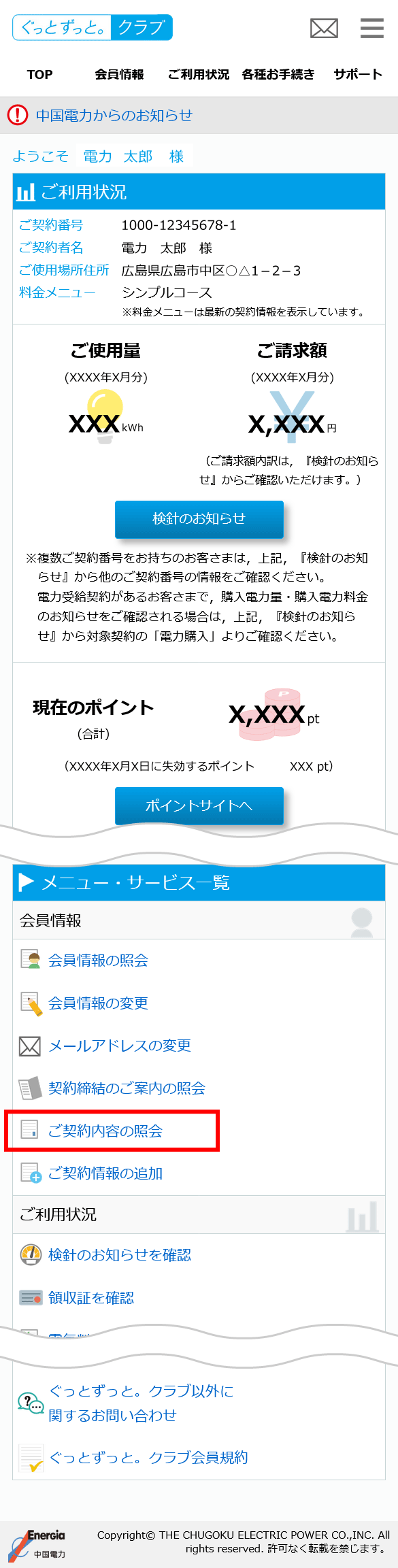 「ぐっとずっと。クラブ」にご登録の電気のご契約番号13桁 をご入力ください。