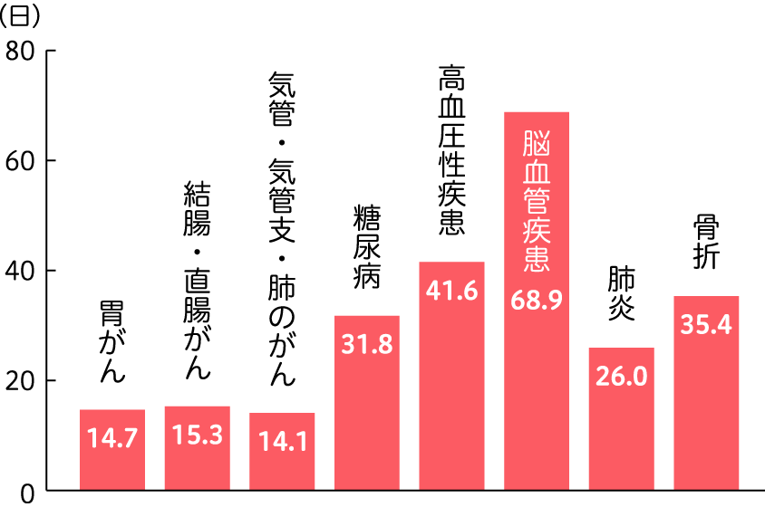 - 治療費・⾷事代・差額ベッド代に加え、交通費(⾒舞いに来る家族の交通費も含みます。)や⾐類、⽇⽤品費などを含みます。