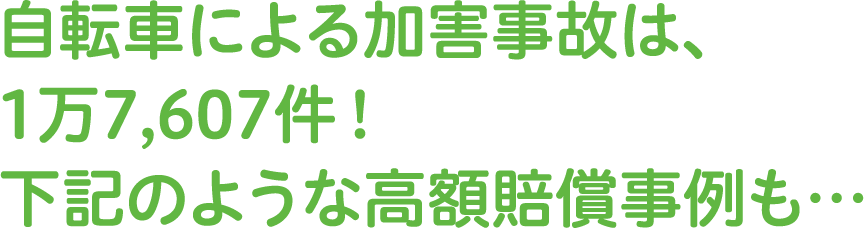 - ⾃転⾞を運転中、誤って歩⾏者と接触し、ケガをさせた。