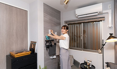 全邸に「ハンズフリーTebraキー」が標準装備されており、玄関の鍵の開け閉めがボタン一つで行えます。急いでいる朝も、荷物が多い夕方も、出入りをできる限りスムーズに。毎日繰り返す動作だからこそ、このひと工夫が快適さにつながります。