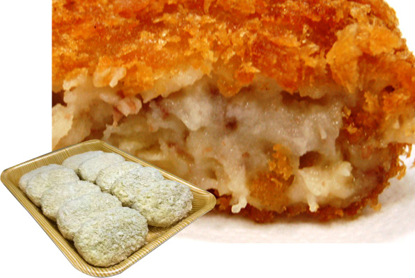 中山精肉店 千屋牛コロッケ 千屋牛の中でも4等級・5等級のミンチを贅沢に使用した、中山精肉店オリジナルのコロッケです。 |