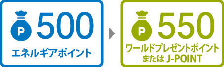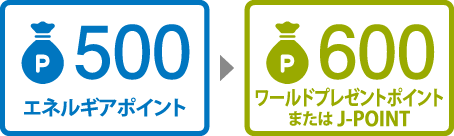 - ポイントの交換は、500エネルギアポイント単位でお申し込みいただけます。