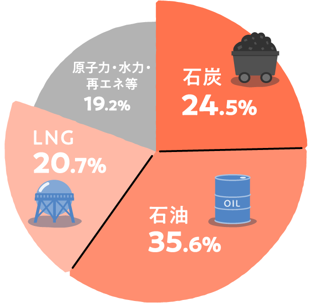 日本のエネルギーは、石炭や石油、LNGなどの化石燃料に大きく依存しています。これらを海外からの輸入に頼っているため、世界情勢や為替の影響を受けやすくなっています。